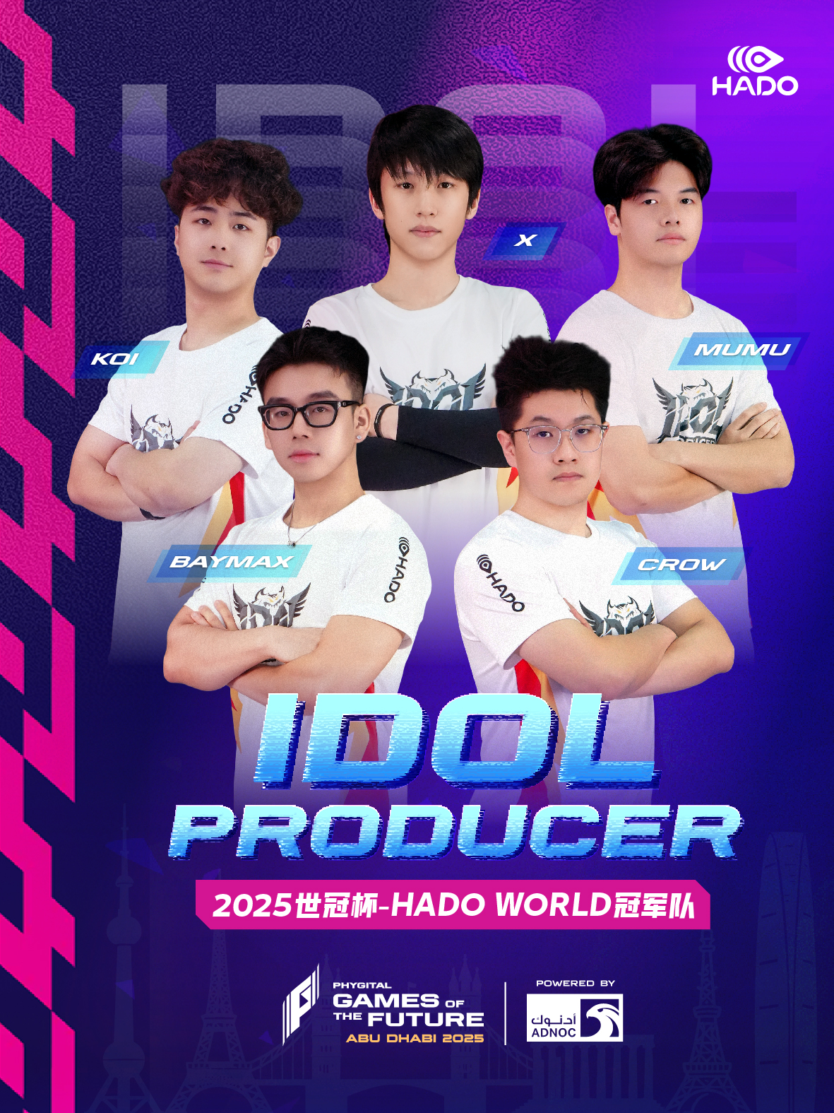 作为 HADO WORLD 2v2 Global Open 2025 的卫冕冠军,Idol Producer已迅速成长为国际HADO赛场最受瞩目的新兴力量之一。依托强大的年轻选手阵容,战队在国际舞台上持续交出亮眼成绩,以稳固的防守体系与精准的进攻时机赢得全球关注。