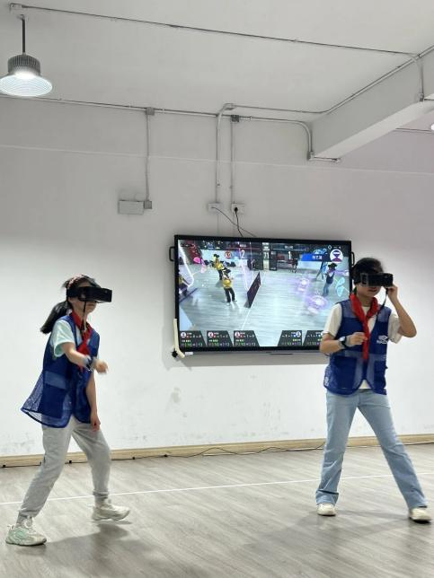 “左边!左边有球!”“看我必杀技!”在老师的指导下,孩子们通过手势发射光球、竖起盾牌。虽然是虚拟的竞技,但跑动、跳跃、呐喊都是真实的。不需要身体接触,却充满了竞技体育的紧张与刺激。看着屏幕上跳动的数字和得分,每一个孩子的脸上都洋溢着自信的笑容。这不仅仅是游戏,更是反应力、判断力和团队凝聚力的综合较量。